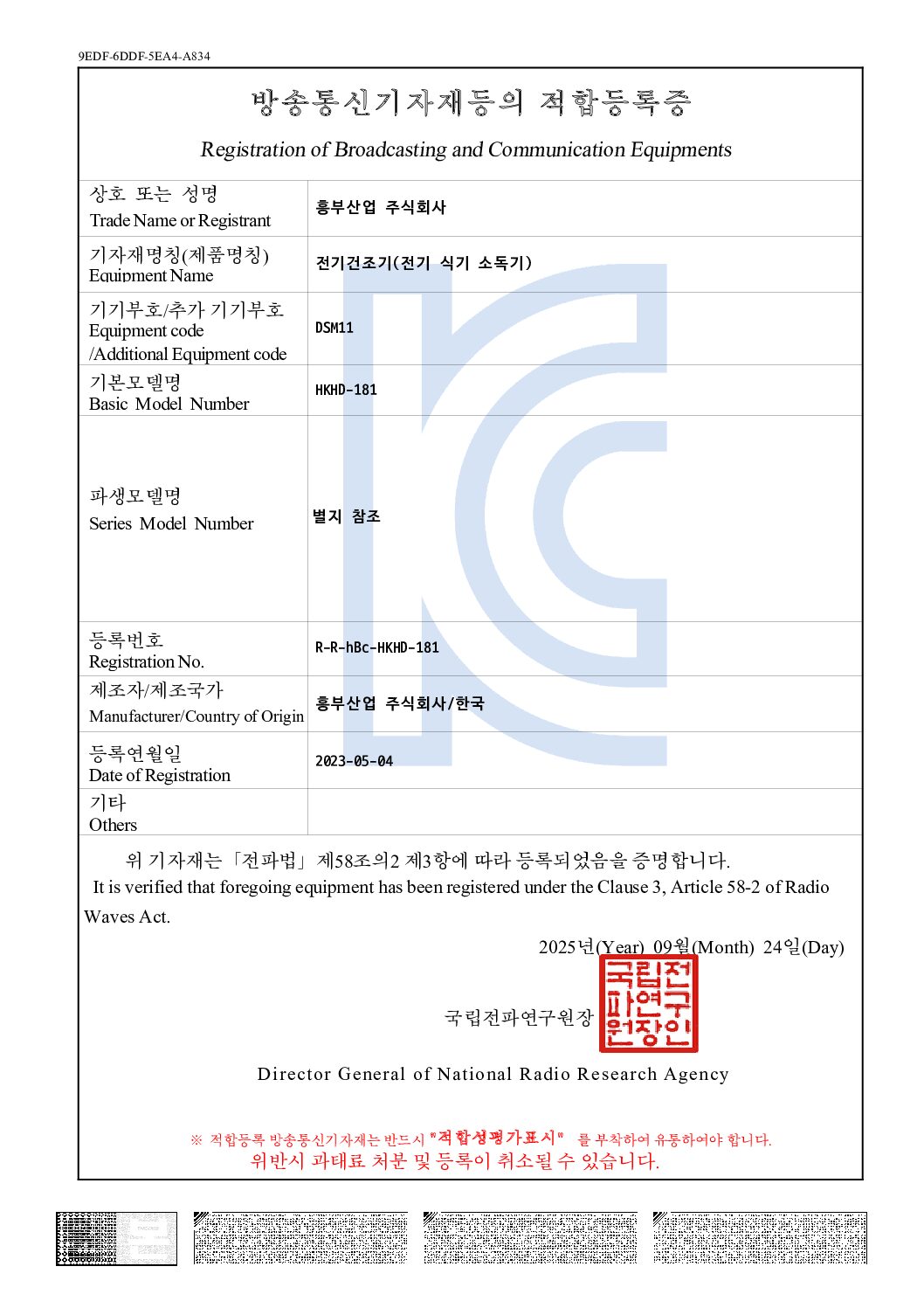 -전자파 적합등록 필증 변경(HKHD-183)–