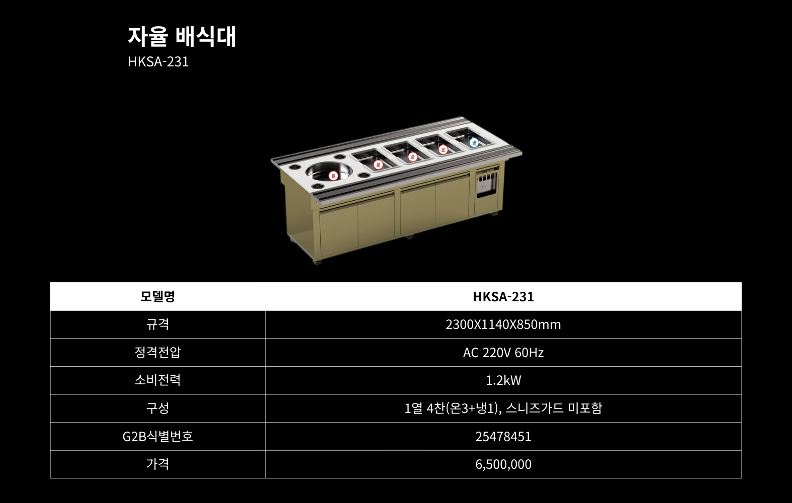 배식대 HKSA-231hbkitchen32432026-02-10T14:22:48+09:00 자율배식대학교급식배식대수저·식판배분대국배식대밥배식대보조배식대국보온운반카배식대제목자율배식대 HKSA-231 모델명흥부산업 자율배식대 HKSA-231판매가(VAT포함)6,500,000원조달물품식별번호25478451상품정보STS 304 스테인리스규격2300X1140X850mm나라장터 바로가기학교장터 바로가기구매문의 바로가기Detail View