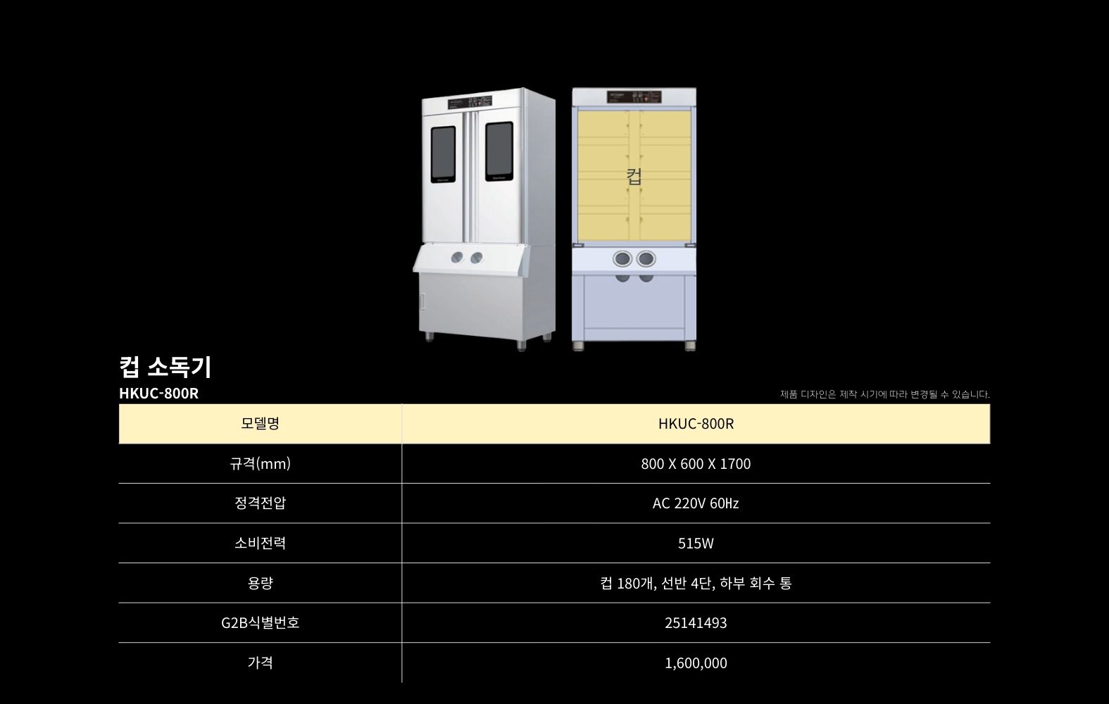 HKUC-800R 컵소독기hbkitchen32432026-02-19T11:21:26+09:00 복합 소독기위생복 소독기앞치마 소독기고무장갑 소독기행주 소독기칼·도마 소독기장화·신발 소독기조리기구 소독기청소도구 소독기식판 소독기컵 소독기복합 소독기위생복 소독기앞치마 소독기고무장갑 소독기행주 소독기칼·도마 소독기장화·신발 소독기조리기구 소독기청소도구 소독기식판 소독기컵 소독기 컵 소독기제목HKUC-800R 컵소독기 모델명흥부산업 컵 소독기 HKUC-800R판매가(VAT포함)1,600,000원조달물품식별번호25141493상품정보AC 220V / 515W / 살균 / 건조 / 탈취규격800X600X1700mm용량컵 200개, 선반 4단, 하부 회수 통나라장터 바로가기학교장터 바로가기구매문의 바로가기Detail View상품정보 (Product information)제조사흥부산업(주)모델명HKUC-800RG2B식별번호25141493규격800X600X1700mm용량컵 200개, 선반 4단, 하부 회수 통소비전력AC 220V / 515W제조국대한민국재질스테인레스 304품질보증기간구매일로부터 1년 A/SA/S 전화번호1566-3243
