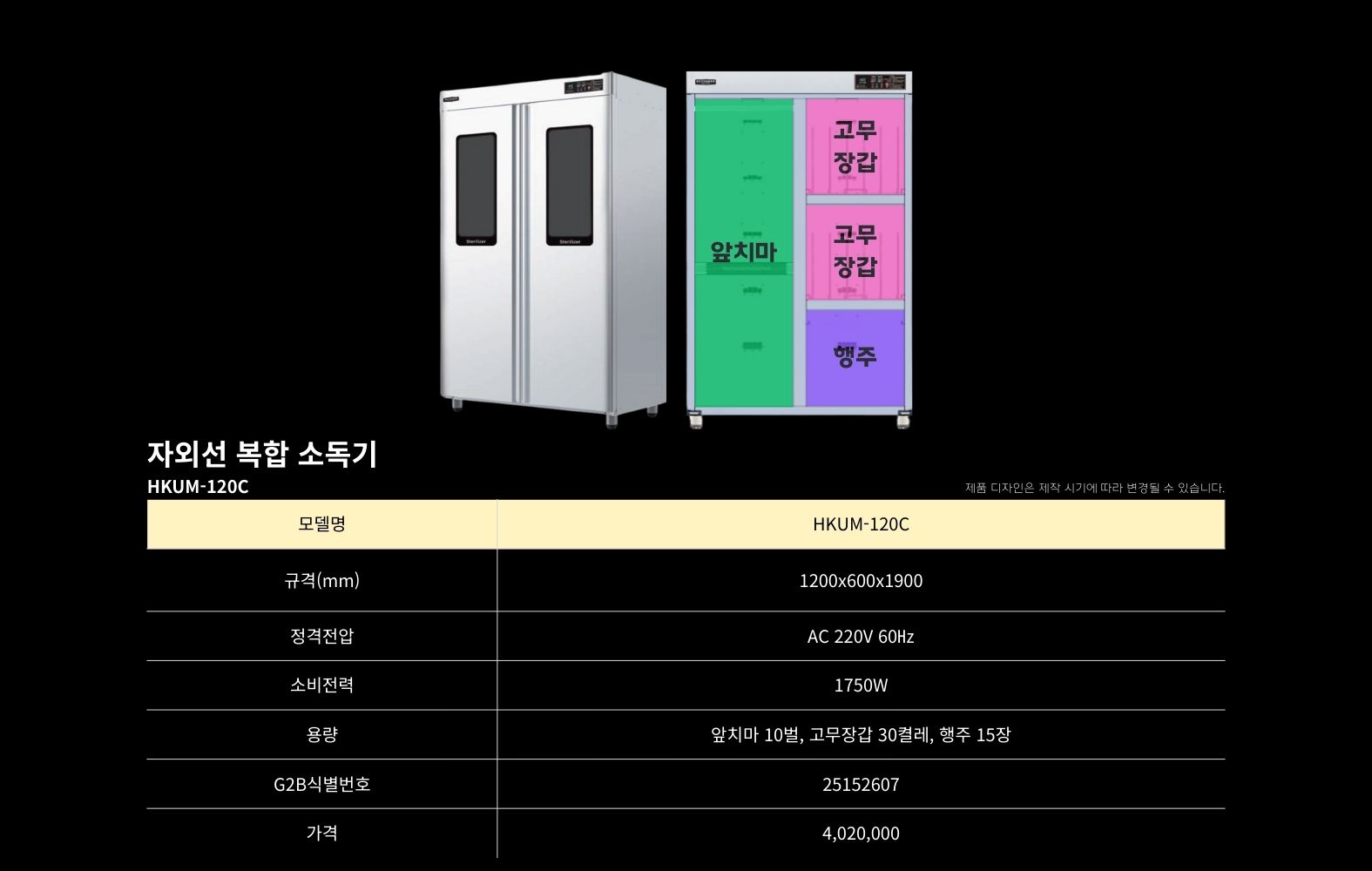 HKUM-120C 복합소독기hbkitchen32432026-02-10T16:47:13+09:00 복합 소독기위생복 소독기앞치마 소독기고무장갑 소독기행주 소독기칼·도마 소독기장화·신발 소독기조리기구 소독기청소도구 소독기식판 소독기컵 소독기복합 소독기위생복 소독기앞치마 소독기고무장갑 소독기행주 소독기칼·도마 소독기장화·신발 소독기조리기구 소독기청소도구 소독기식판 소독기컵 소독기 복합 소독기제목HKUM-120C 복합소독기 모델명흥부산업 복합소독기 HKUM-120C판매가(VAT포함)4,020,000원조달물품식별번호25152607상품정보AC 220V / 890W / 살균 / 건조 / 탈취규격1200X600X1900mm용량앞치마 10벌, 고무장갑 30켤레, 행주 15장나라장터 바로가기학교장터 바로가기구매문의 바로가기Detail View상품정보 (Product information)제조사흥부산업(주)모델명HKUM-120CG2B식별번호25152607규격1200X600X1900mm용량앞치마 10벌, 고무장갑 30켤레, 행주 15장소비전력AC 220V / 890W제조국대한민국재질스테인레스 304품질보증기간구매일로부터 1년 A/SA/S 전화번호1566-3243